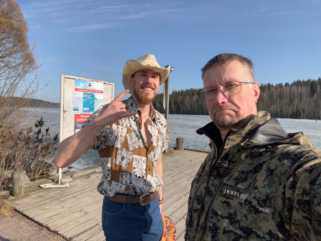 Oltiin kuvaamassa Aaronin toiseen videoon vähän talvimaisemia – se biisi ja video tulevat ulos vasta kesällä – kun Aaron kysäisi onnistuisiko kuvata seuraavalla viikolla yksi duettovideokin. No tottakai ! Ei muuta kuin biisi kuultavaksi ja teksti ihmeteltäväksi niin aletaan tekemään. Aaronilla oli jo kuvauspaikkakin mielessä, joten siitä on hyvä lähteä suunnittelemaan.